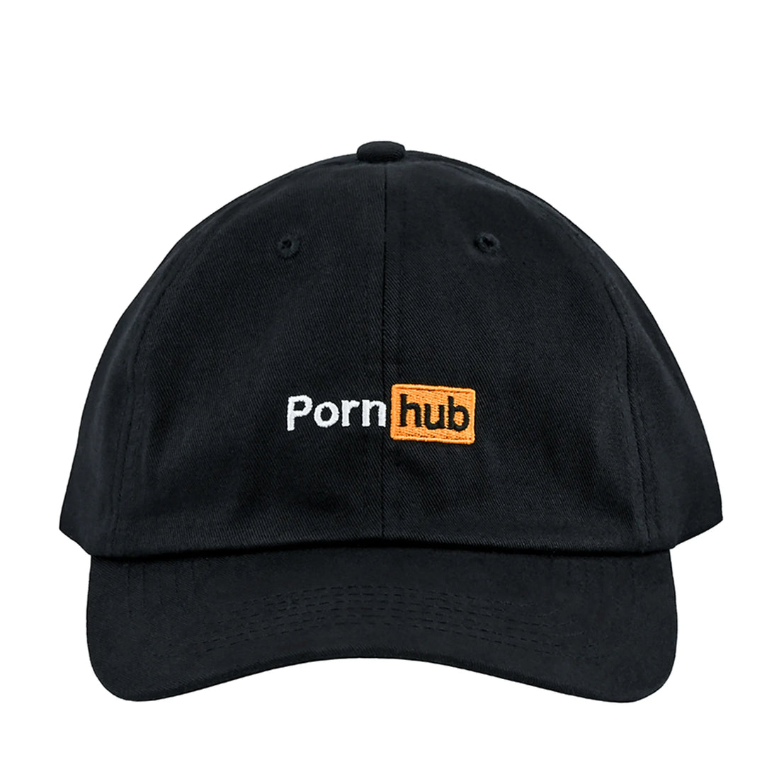 This Pornhub black dad cap features a low profile with an adjustable strap and curved...