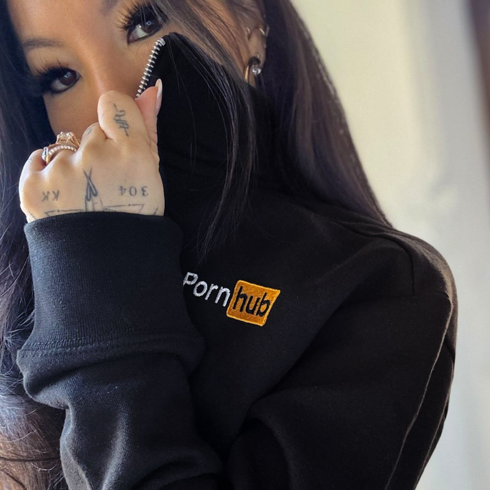 Dieser ultrabequeme, perfekte Pullover ist kurz geschnitten, um ein wenig mehr Haut zu zeigen. Er verfügt über ein gesticktes Pornhub-Logo auf der seitlichen Brust, gerippte Ärmelbündchen und ist aus weicher Baumwolle gefertigt.