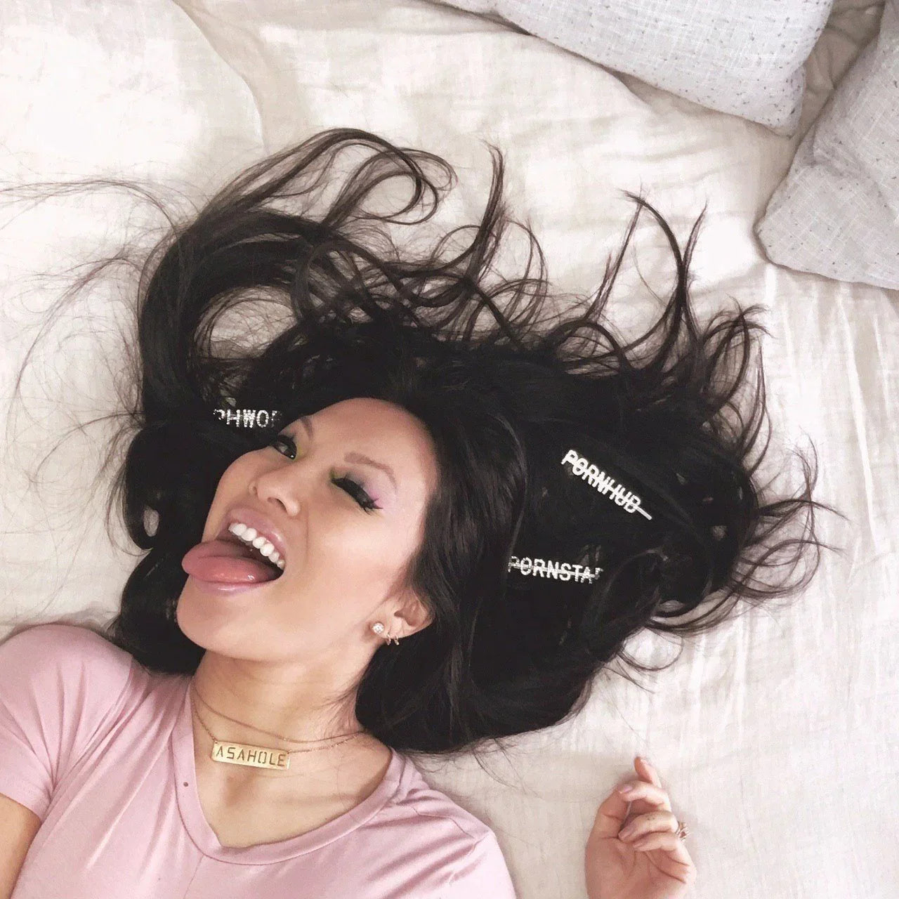 Viel Spaß beim Ausdrücken, während Sie Ihre Haare nach hinten stecken. Diese modischen Bobby-Pins von Pornhub sorgen für einen Hauch von Glamour mit glitzernden Strasssteinen, die den Buchstaben PORNSTAR buchstabieren, damit du es nicht tun musst.