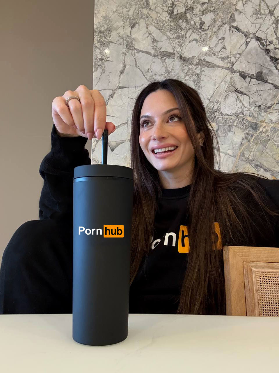 Stay hydrated on the go with the Pornhub tumbler. Designed to keep your cold drinks icy and your hot drinks steaming. Featuring a reusable straw and bold Pornhub branding, it’s the ultimate companion wherever your day takes you.