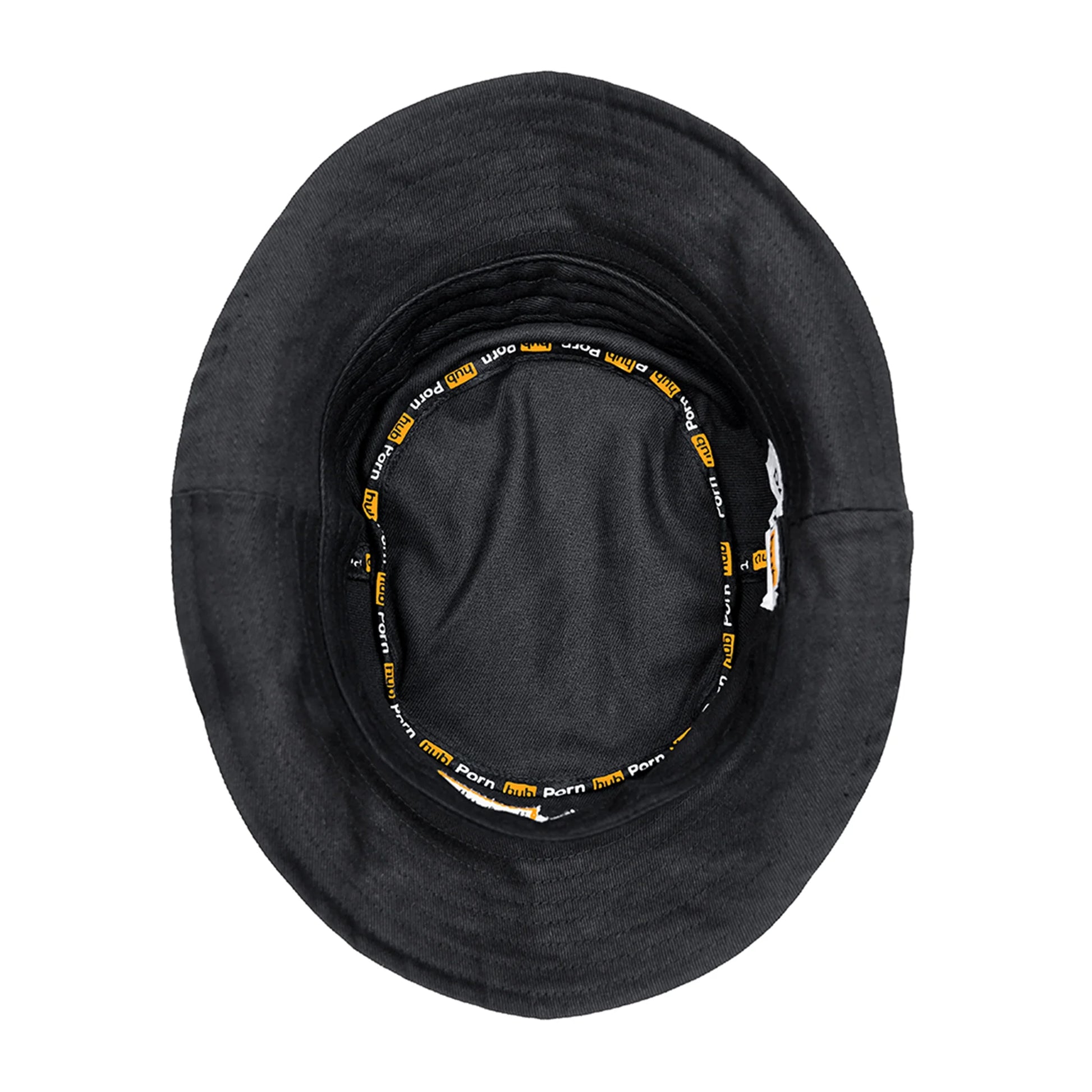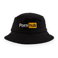 Block your eyes from the sun in style with the Pornhub black bucket hat. Made of a sturdy blended cotton fabric, this hat will keep its shape and features an embroidered logo on the front and custom branded piping on the interior.