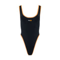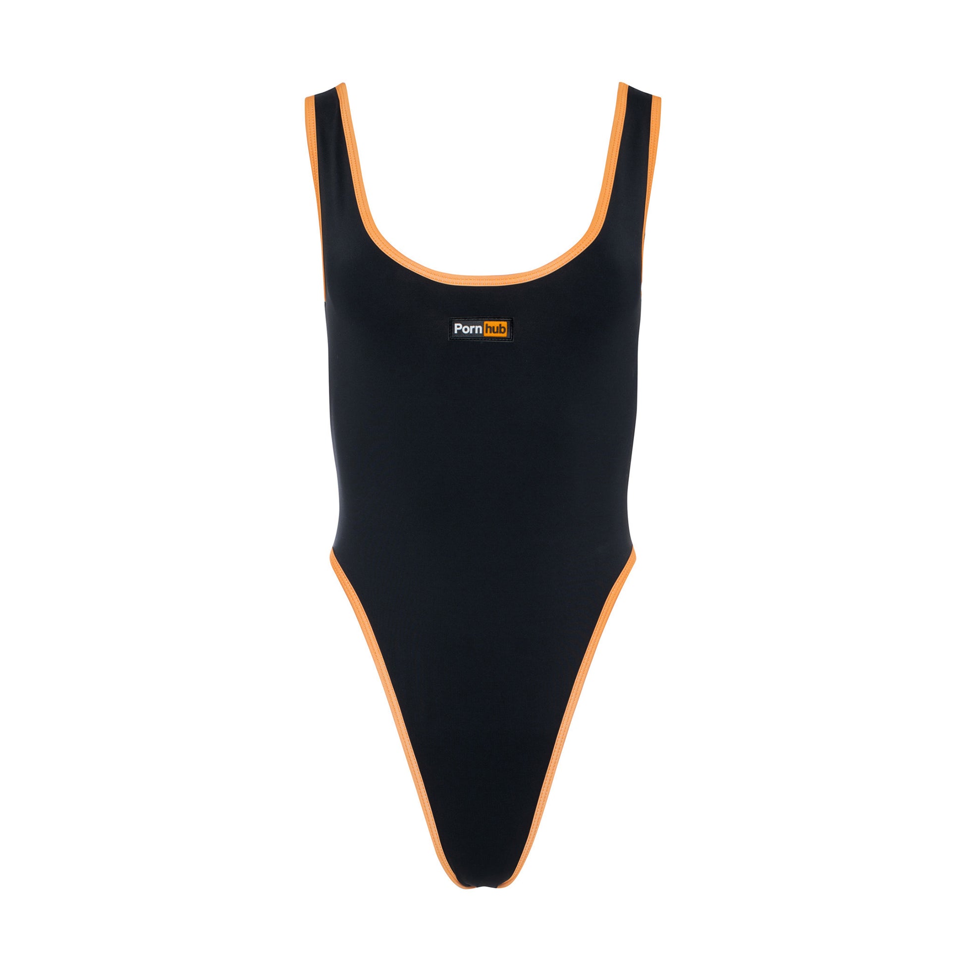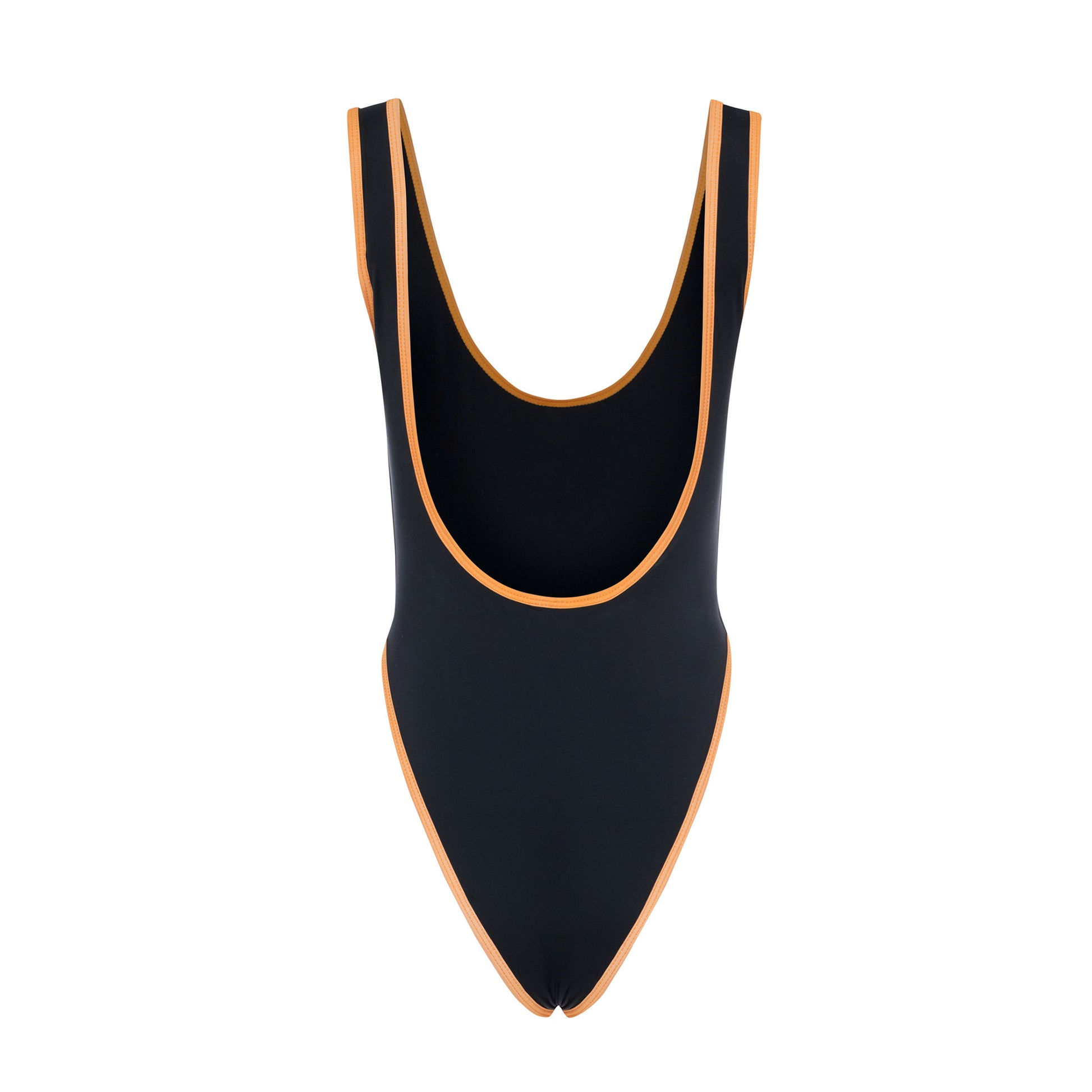 Channel the iconic glamour of 1980’s swimsuit models with our debut One-Piece Swimsuit. Featuring a sleek black body, bold orange trim, and our signature logo, this timeless design brings retro vibes with a modern edge.