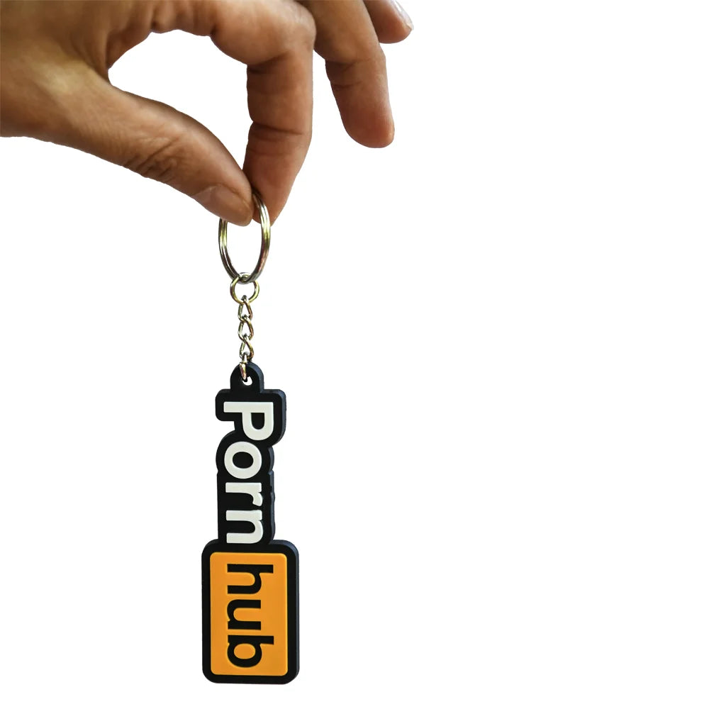 The Pornhub logo is easy to spot anywhere. Next time you lose your keys, let the glossy black and orange design of our rubber keychain guide you to find them.